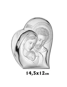 ICONO PLATA CORAZÓN SAGRADA FAMILIA ,14- 5X12 CM.