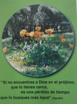 Postal de paisaje con frase de Gandhi.