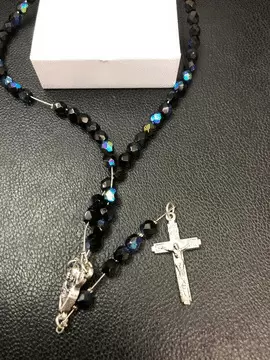 Rosario en cajita cristal en dos tonos. Negro-Azul oscuro.