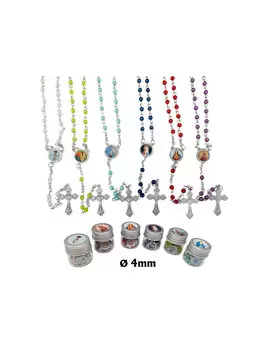 ROSARIO PLASTICO LISO 4MM EN TARRITO TAPON METALIZADO
