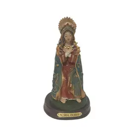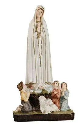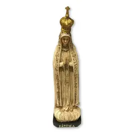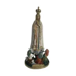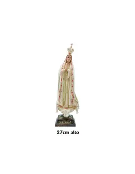 VIRGEN DE FÁTIMA ENVEJECIDA FLORAL ROSA. RESINA. 27 CM