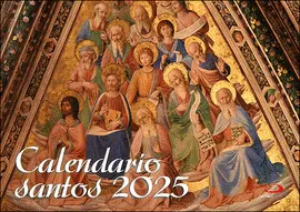 Calendario de pared con imágenes de santos (Juan Bosco, Blas, Perpetua y Felicidad, Catalina de Siena, José, Micaela del Santísimo Sacramento, Cristóbal, Agustín y Mónica, Vicente de Paúl, Judas Tadeo, Cecilia y Bárbara), tomadas de tallas, frescos, pinturas, mosaicos, vidrieras… Incluye enero de 2026, las fiestas nacionales, el día festivo de cada Comunidad Autónoma, el santo del día y las advocaciones marianas más importantes.