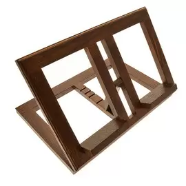 Atril de mesa en madera oscuro regulable.