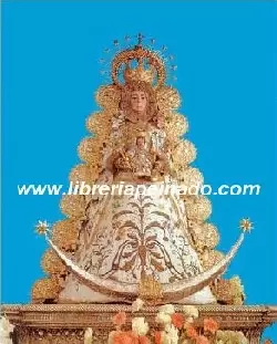 Colgadura religiosa para balcón con la imagen de la Virgen del Rocío a todo color, que se puede utilizar para adornar los balcones y ventanas. Estas colgaduras vienen confeccionadas con cuatro cintas laterales para que se puedan atar al balcón o ventana..