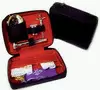 Incluye: portaviáticos, crismera, crucifijo, hisopo, estola, purificador y corporal.