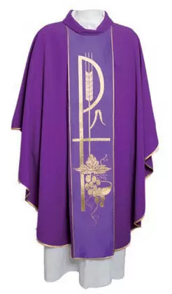 Bonita casulla bordada ambos lados.Poliester 100%- Estola incluida.Disponible en los 4 colores litúrgicos. ...