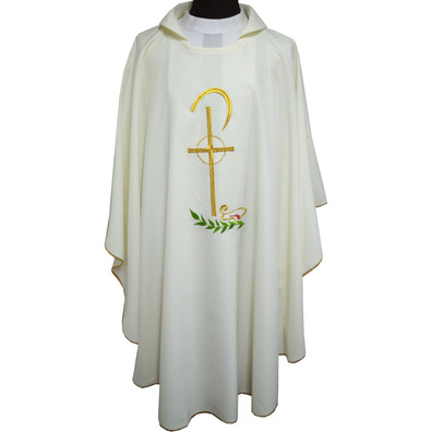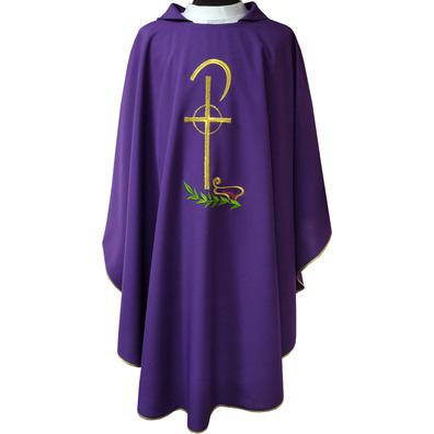 Casulla 100% poliester bordado aplicado. En los cuatro colores litúrgico. Dibujo por ambas caras. Estola incluida. ...