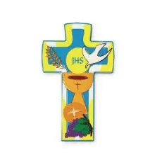 Cruz Comunión en Polímero acabado en brillo. Dimensiones: 10,5x17 cm.