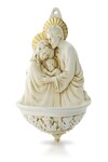 Pila bautismal de la Sagrada Familia de resina envejecida con detalles dorados Al. 22 cm