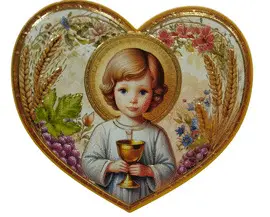 Cuadro con forma de corazón del Niño Jesús. Para la mesa y para colgar. Comunión.