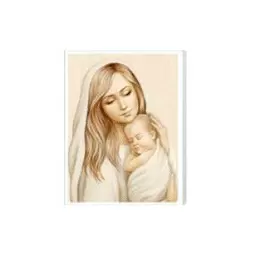 CUADRO EN MADERA VIRGEN CON EL NIÑO ACABADO EN BLANCO CON IMAGEN ACABADO BRILLO. 29 x 29