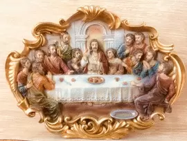 Cuadro ovalado con la imagen de la Santa Cena. En Pasta Resina.