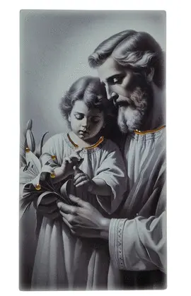 CUADRO MADERA SAN JOSÉ EN BLANCO Y NEGRO Y DETALLES EN DORADO.MEDIDA .9X18 CM.