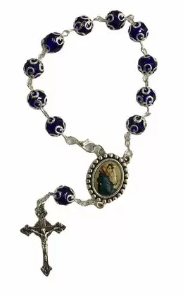 Precioso rosario decenario elaborado en filigrana cristal de roca azul.