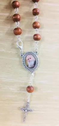 Decenario rosario Fray Leopoldo madera marrón.