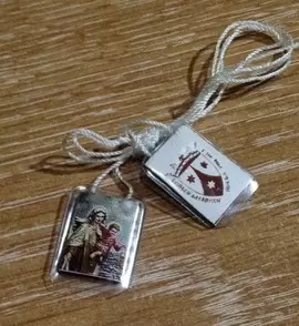 Escapulario de la Virgen del Carmen en tela plastificada.