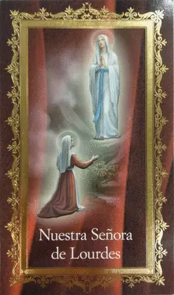 Estampa con biografía y oración de la Virgen de Lourdes.