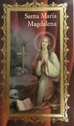 Estampa con biografía y oración de María Magdalena.