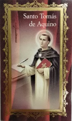 Estampa con biografía y oración de Santo Tomás de Aquino.