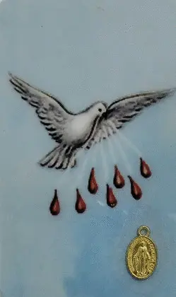 Estampa plastificada y con oración del Espíritu Santo. Contiene medalla de la Milagrosa.