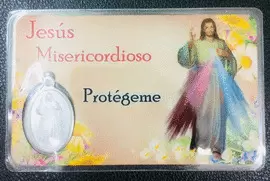 ESTAMPA-MEDALLA JESÚS MISERICORDIOSO. ORACIÓN. PLASTIFICADA
