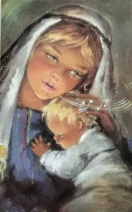 Paquete de 5 estampas iguales y con oración del Ave María.
