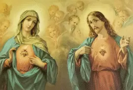 ESTAMPAS CORAZÓN DE MARÍA Y JESÚS ORACIÓN 5 UNIDADES