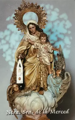 Paquete de 5 estampas iguales y con oración de la Virgen de la Merced.