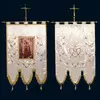 Bordado en el contorno de la imagen y toda la parte posterior.Imagen plastificada y rematada con agreman metálico.