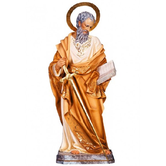 Imagen de San Pablo realizada en pasta cartón madera, con ojos de cristal y decorada a mano con pinturas al óleo.