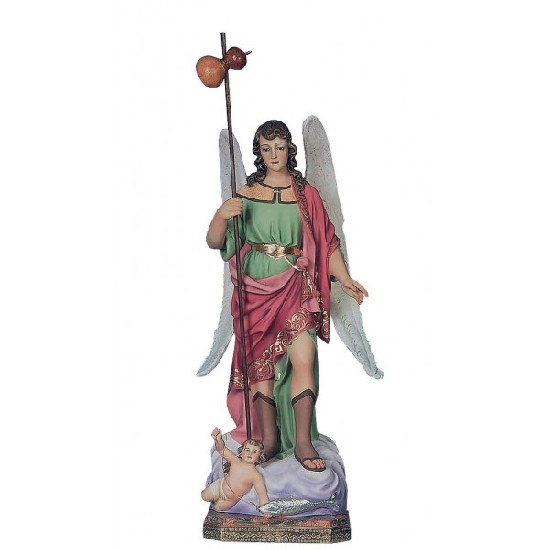 Imagen de San Rafael de Córdoba realizada en pasta cartón madera, con ojos de cristal y decorada a mano con pinturas al óleo.
