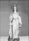 Imagen de Santa Barbara realizada en pasta cartón madera, con ojos de cristal y decorada a mano con pinturas al óleo.