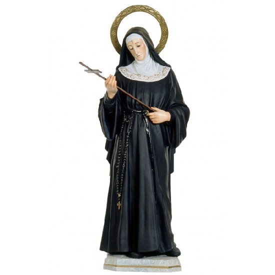 Imagen de Santa Rita realizada en pasta cartón madera, con ojos de cristal y decorada a mano con pinturas al óleo.