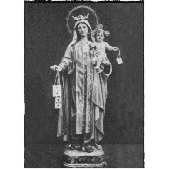 Imagen de Virgen de los Remedios realizada en pasta cartón madera, con ojos de cristal y decorada a mano con pinturas al óleo.