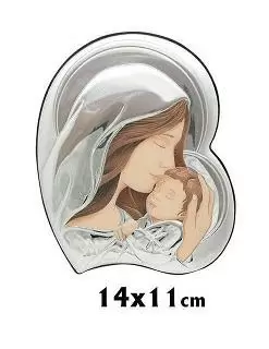ICONO PLATA VIRGEN CON NIÑO ROSTROS PINTADOS 14X 11 CM.
