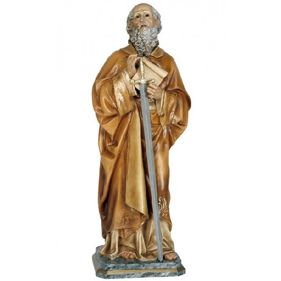 Imagen de San Pablo realizada en pasta cartón madera, con ojos de cristal y decorada a mano con pinturas al óleo.