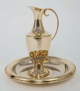 Lavabo para la Iglesia en metal pulido niquelado.Medidas: plato 17 cm. Jarra altura 16 cm. ...