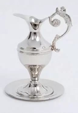 Lavabo para la Iglesia en metal pulido niquelado.Medidas: plato 17 cm. Jarra altura 16 cm. ...