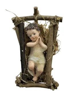 NIÑO JESUS EN CUNA DE TRONCO 14 CM.