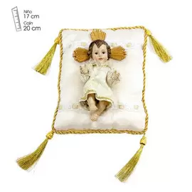 NIÑO JESÚS VESTIDO CREMA CON COJÍN 17 CM.
