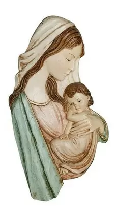 PLACA VIRGEN CON NIÑO 26X12CM RESINA MARMOL
