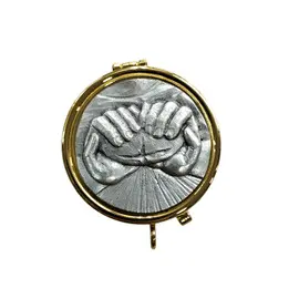 Portaviáticos dorado co motivo plateado "manos con pan"
