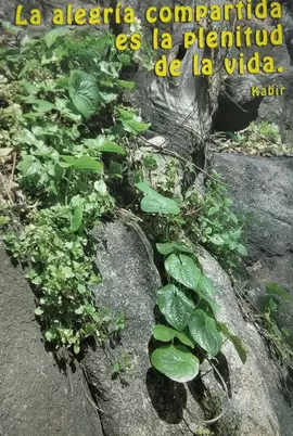 Postal con frase de la alegría de Kabir: ''La alegría compartida es la plenitud de la vida''.