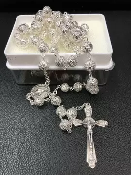 Rosario filigrana 8 mm. con cajita. Largo 55 cm.