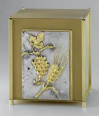 Sagrario diseño contemporáneo de la ültima Cena.Fabricado en resina, tono latonado.Interior Baño de oro.DISPONIBLE EN DORADO Y PLATEADOMedidas: 25 x 27 x 26 cm.Medidas interiores: 20 x20 x20 cms ...