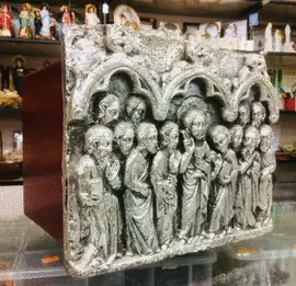 Sagrario diseño contemporáneo de la ültima Cena.Fabricado en resina, tono latonado.Interior Baño de oro.DISPONIBLE EN DORADO Y PLATEADOMedidas: 25 x 27 x 26 cm.Medidas interiores: 20 x20 x20 cms ...
