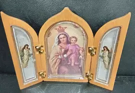 TRÍPTICO DE MADERA DE LA VIRGEN DEL CARMEN.