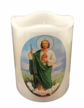 Velas de Santos elaborada en cera blanca con imagen de San Judas Tadeo.