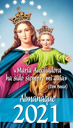 Almanaque de sobremesa. Resalta los sábados y fiestas marianas.Citas bíblicas de la Misa de cada día con un versículo.Instrumento de cultura básica religiosa.Contempla los santos, beatos, venerables y siervos de Dios de la Familia Salesiana.Informaciones curiosas (salida y puesta del Sol, fases de la Luna...)