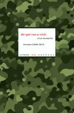 De qué vas a vivir reúne en un solo volumen los cinco libros de poemas que ha publicado hasta hoy Juan Marqués (Zaragoza, 1980), es decir, Un tiempo libre (Granada, Comares, 2008), Abierto (Valencia, Pre-Textos, 2010. Premio Gerardo Diego), Blanco roto (Valencia, Pre-Textos, 2016), El cuarto de estar (Valencia, Pre-Textos, 2018) y Diez mil cien (Sevilla, Fundación José Manuel Lara, 2020. Premio Hermanos Machado), más dos poemas inéditos: un gorrión (poema breve) y una ballena (poema largo).
